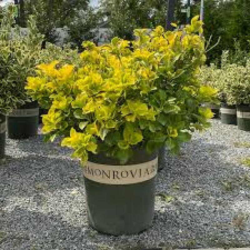 Euonymus 'Golden' thrives in a variety of soil types, provided they are well-drained. It prefers full sun to partial shade, making it adaptable to different lighting conditions. This shrub is also known for its resilience, withstanding drought once established, and it is relatively low-maintenance, requiring minimal pruning to maintain its shape.