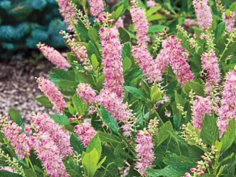Clethra alnifolia 'Ruby Spice', commonly known as Sweet Pepperbush, is a deciduous shrub celebrated for its striking floral display and fragrant blooms. This variety stands out with its unique ruby-pink flowers that emerge in mid to late summer, attracting pollinators such as bees and butterflies.