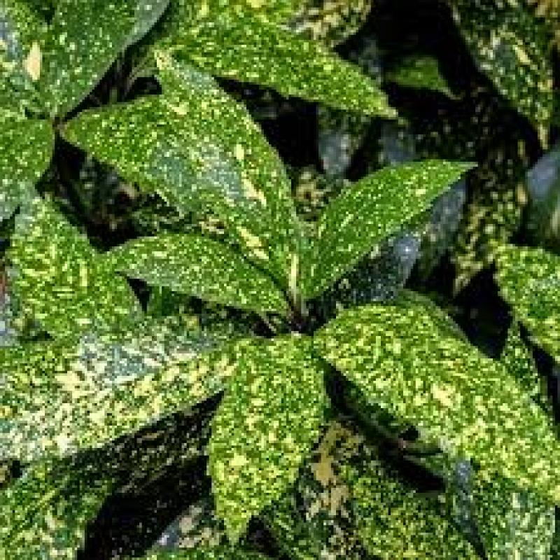 Aucuba 'Gold Dust' is an evergreen shrub known for its striking foliage and resilience. The leaves are glossy green, adorned with bright yellow speckles, creating a visually appealing contrast that enhances any landscape.