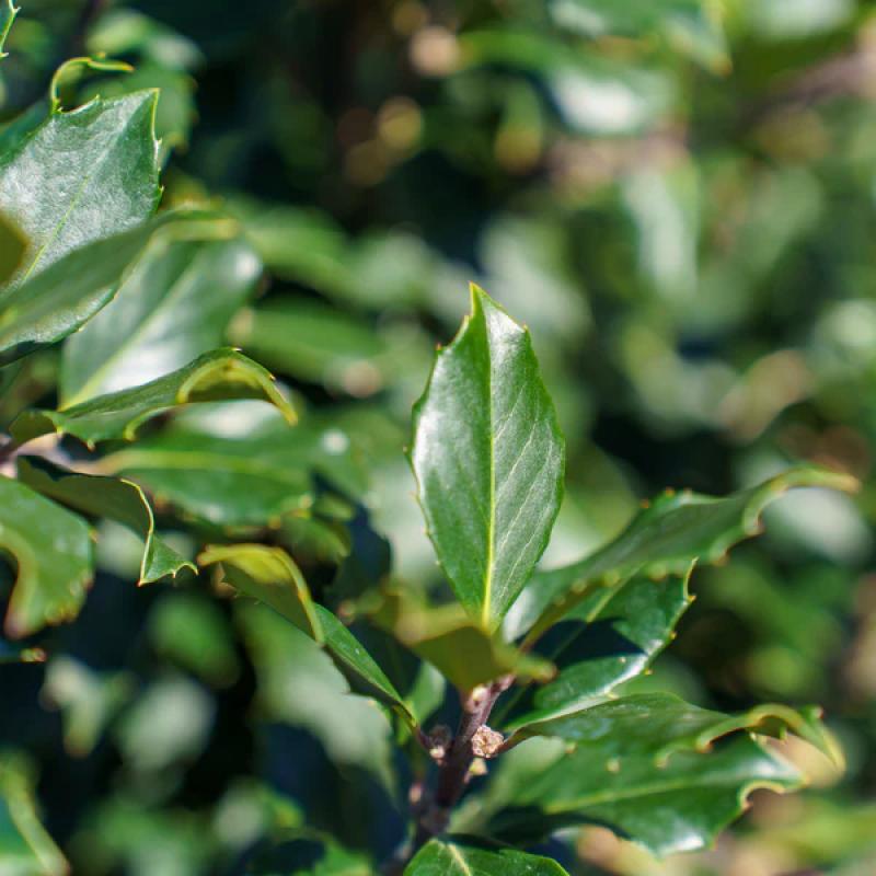 Foliage: This variety features glossy, dark green leaves that provide a vibrant backdrop throughout the seasons. The leaves are spiny and serrated, adding texture and interest to your landscape.