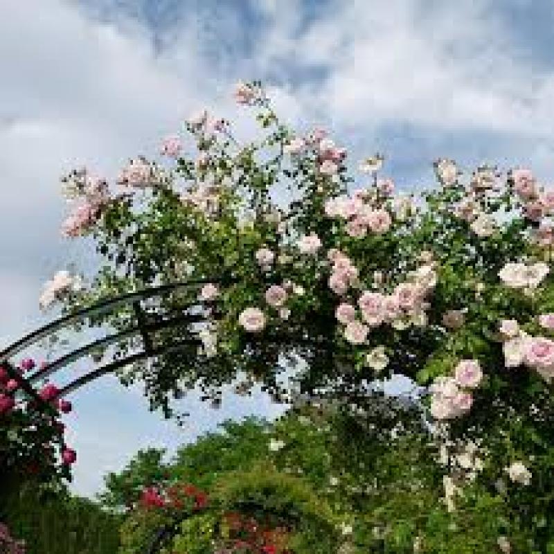 Rosa 'New Dawn' is a renowned climbing rose that brings a touch of elegance and charm to any vertical space. This variety is celebrated for its stunning, soft pink blooms that unfurl in large clusters, creating a visually striking display from late spring through fall. The flowers possess a delightful fragrance, enhancing the sensory experience of your garden.