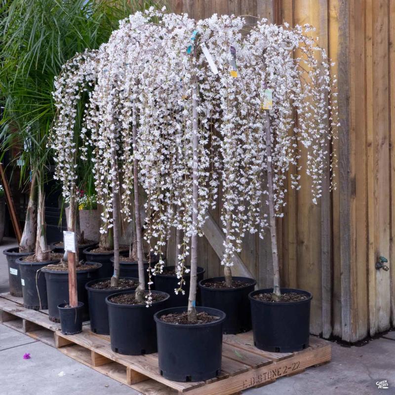 This tree thrives in well-drained soil and prefers full sun to partial shade, ensuring that it flourishes in a variety of conditions. The Prunus p. 'Snow Fountain' is also known for its resilience, making it a reliable choice for gardeners looking to enhance their outdoor spaces with beauty and elegance.